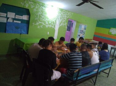 Viven 24/7 hombres que necesitan ser restaurados de adicciones y reinsertados socialmente. Cada uno que ingresa lo hace con una historia que lo trasciende y lo determina, vinculada a la de los adultos que participaron en su historia, como así también situaciones vividas, carencia de contención, hogar, familias sanas, viendo cosas muy difíciles y tristes.. En un contexto de gravedad que tiene componentes multidimensionales, en tanto a derechos vulnerados, como a la dificultad de entender lo imprescindible de su participación para la restauración de su vida, problemas de seguridad dada la exposición que habilita el consumo en tanto su ilegalidad. Rupturas y abandonos familiares, entre otros.