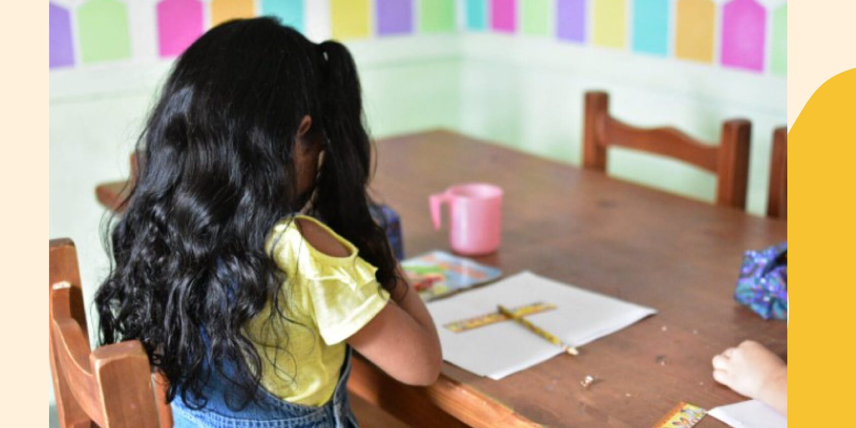 A ella le encanta dibujar y expresarse en el taller de arte.